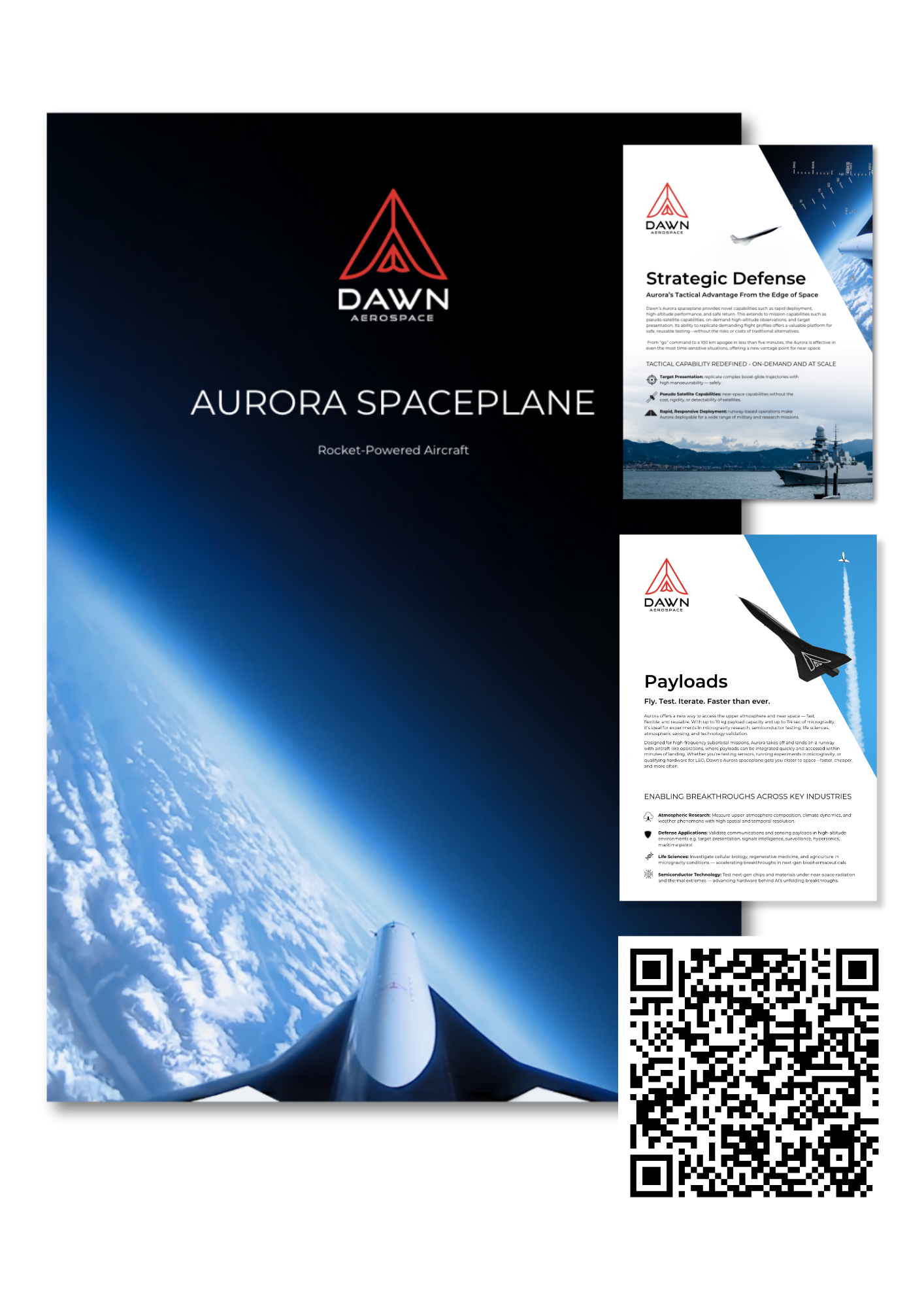Aurora SpaceplaneAircraft SalesPayload EnquiriesRequest a call-back: Name * First Name Last Name Email * Country Interested in Spaceplane Purchase Payload Flights Message * Spaceplane Location (for Licensing) Europe United States Asia Pacific Other Altitudes of Interest Up to 30 km (98,000 ft) Up to 60 km (197,000ft Up to 80 km (262,000 ft) 100 km (328,000 ft) Thank you! Our Spaceplane sales team will reach out to you at their earliest availability. ResourcesClick to go to download link.