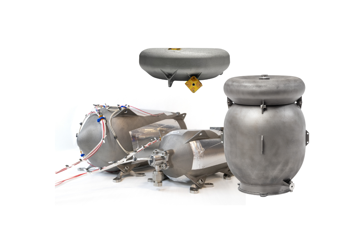 All metallic. 3D printed Inconel or TitaniumType 3: Metallic liner with full, wound carbon-epoxy overwrap